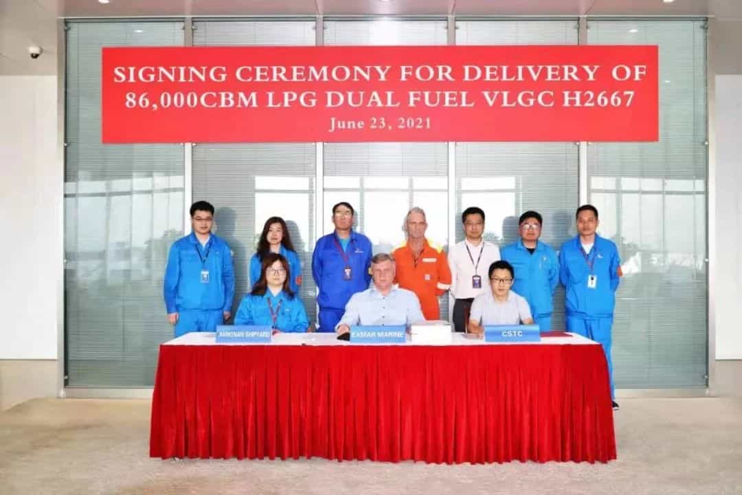 日前,按合同约定,第一艘船已正式交船,这也是当今世界最大的86000立方米级LPG双燃料VLGC,意味着着江南造船与EXMAR公司首次合作取得圆满成功。