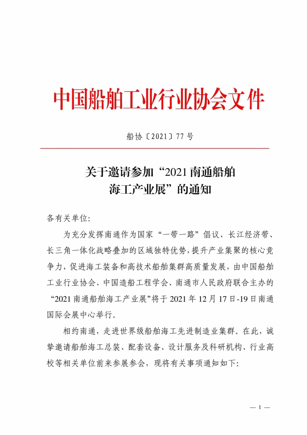 关于邀请参加“2021南通船舶海工产业展”的通知