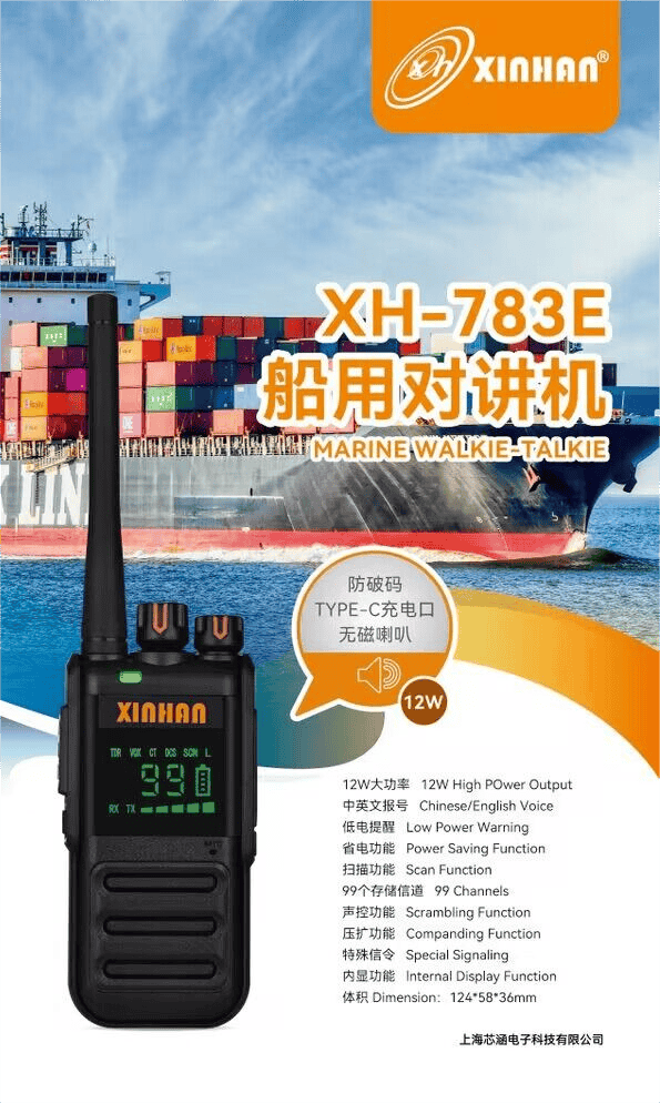 公司凭借多年从事船舶、港口、造船厂等销售海事对讲机以及自主品牌“芯涵科技”销售,得到广大船务、船东的认可及好评,并荣获无线电管理局认证颁发的“销售无线电发射设备-规范企业”和“无线电固定台(站),通信网络技术设计资质”企业。
