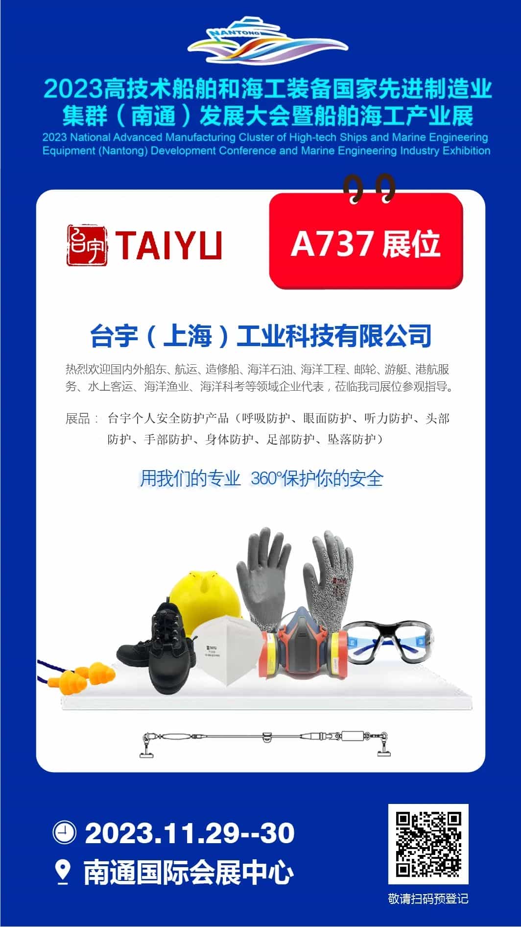 2023年11月29-30日,南通国际会展中心A737展位,台宇与全球船舶人相约南通,走进世界级船舶海工先进制造业集群!